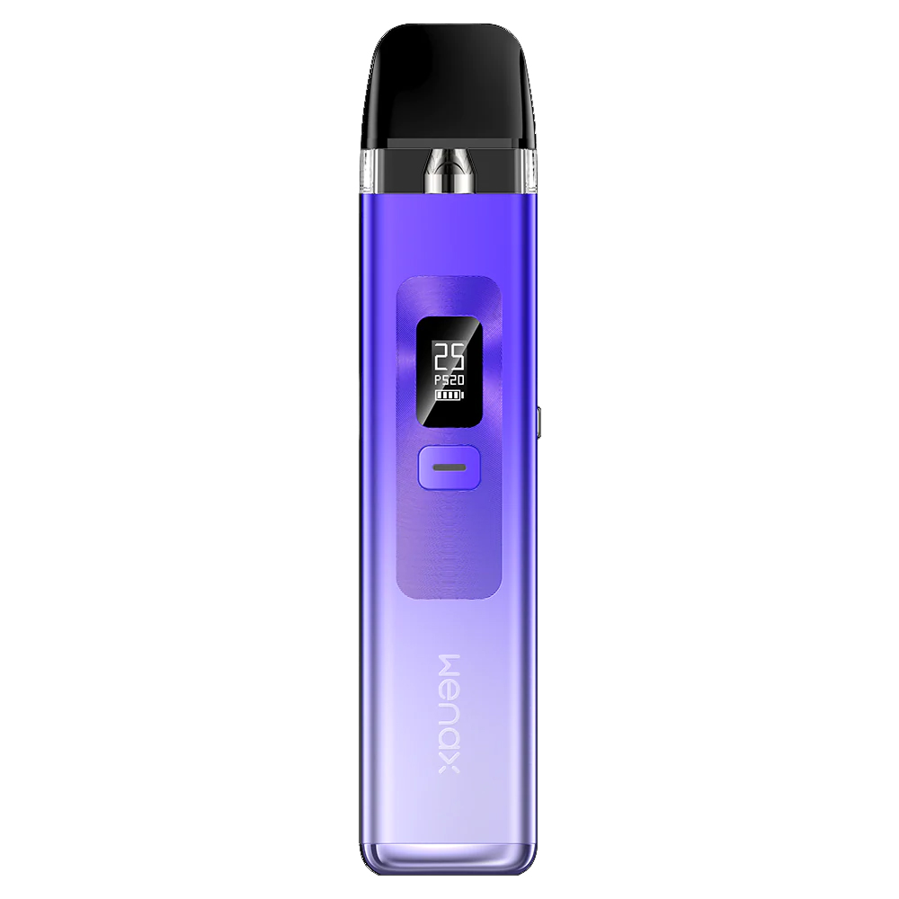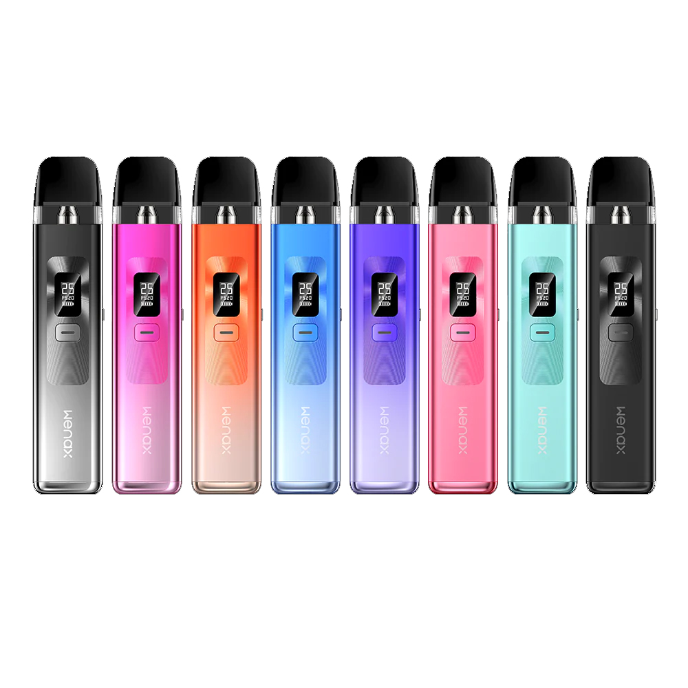 The Geekvape Wenax Q pod vape kit features a 1000mAh battery for all-day use, adjustable 5-25W wattage for customized vaping, 0.6ohm/1.2ohm resistance options, a 2mL pod capacity, and an HD OLED display for easy monitoring.