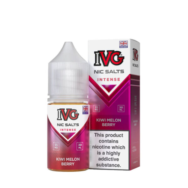 IVG Intense Kiwi Melon Berry blends kiwi, melon, and berries in a smooth 50/50 mix, available in 30ml bottles with 35mg or 55mg nicotine for a fresh, fruity vape.