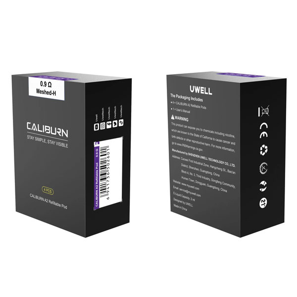 • 4 x Uwell Caliburn A2 0.9ohm Refillable Pods