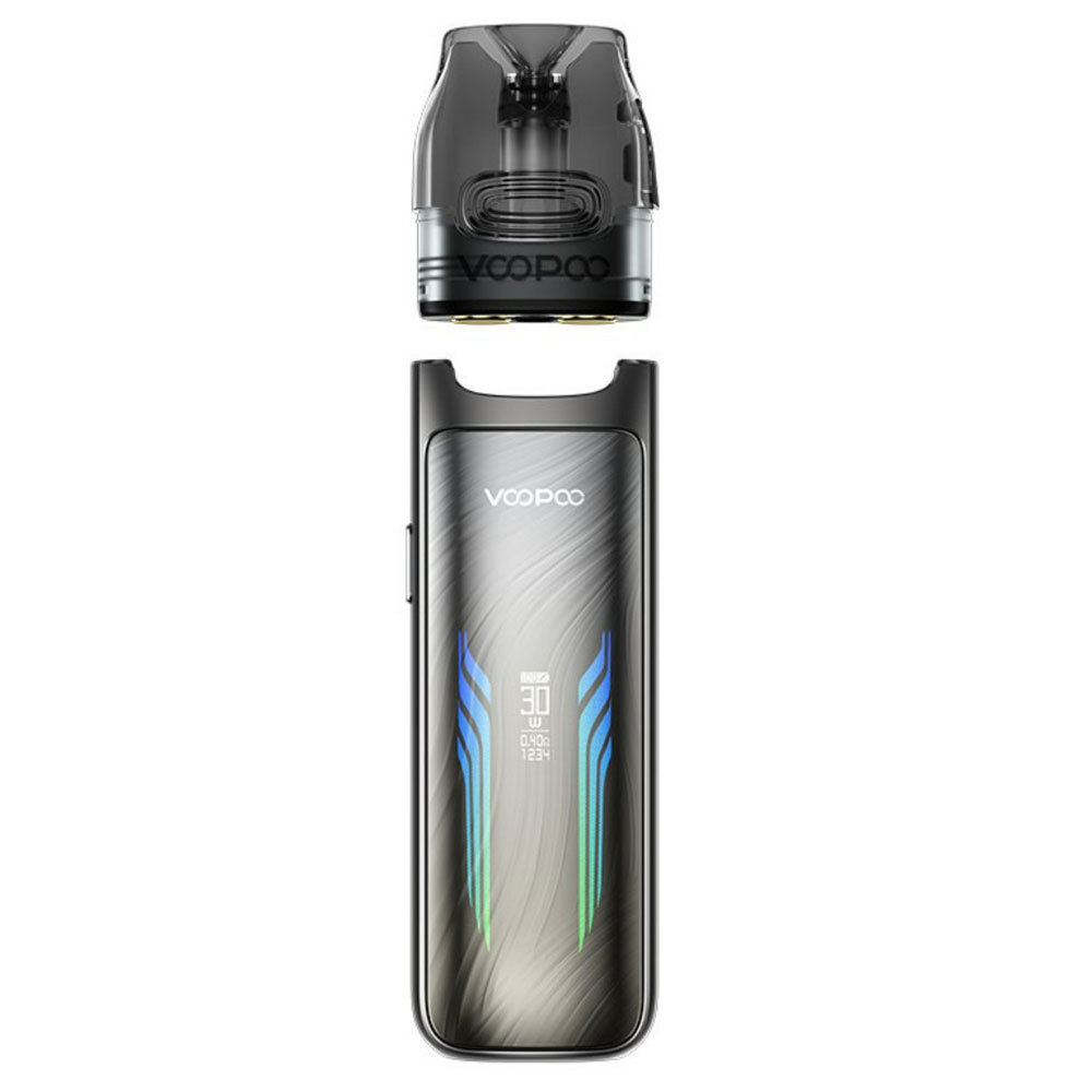 The Voopoo Vmate Max pod combines durability and style with its zinc alloy build, lightweight design, hidden horizon screen, and dual 256-color RGB lights. It features a powerful 1200mAh battery with adjustable power (5W-30W), a 3ml e-juice capacity, and compatibility with Vmate Top Fill Cartridges (0.4Ω and 0.7Ω). The adjustable airflow slider and draw-activated firing mechanism ensure a customizable and user-friendly vaping experience.